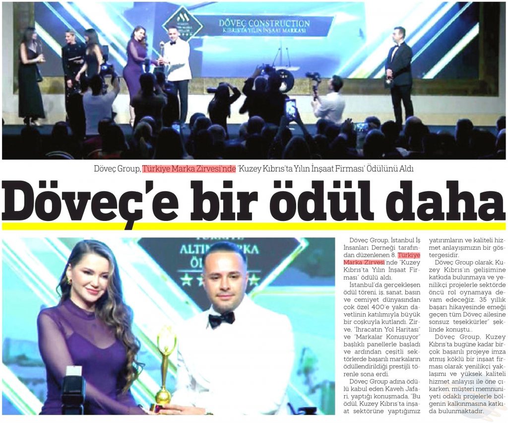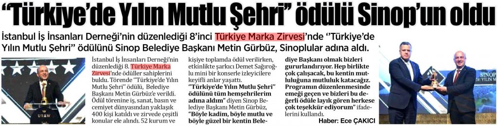 İstanbul İş İnsanları Derneği’nin düzenlediği 8’inci Türkiye Marka Zirvesi’nde Demirören Haber Ajansı (DHA) ‘Yılın Haber Ajansı’ olurken, CNN Türk de ‘Yılın Haber Kanalı’ ödülüne layık görüldü.